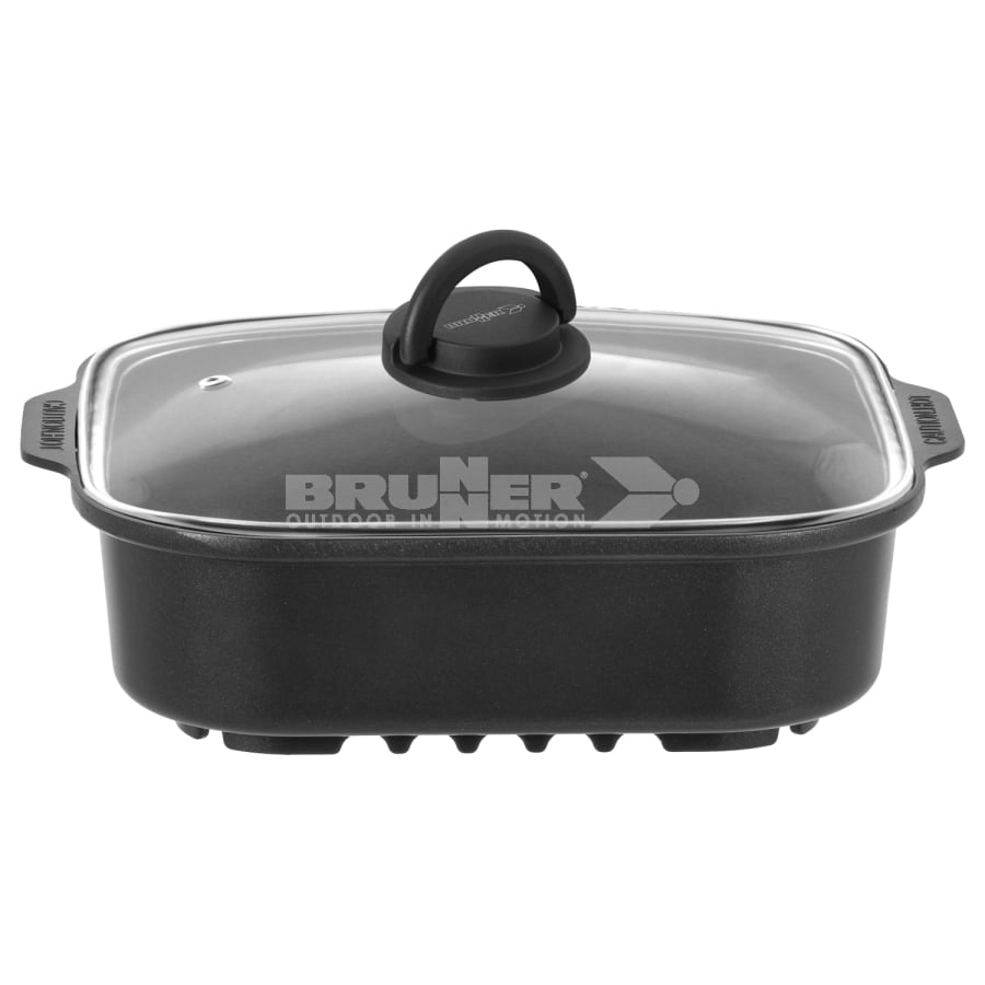 The DEVIL SQUARE PAN is an essential addition to any camping or outdoor cooking setup. Specially designed for use with the Brunner Devil 450 Gas Cooker, this high-quality pan features a uniquely contoured base that ensures a secure grip, providing superior stability during cooking. Thanks to its premium non-stick aluminium construction, it delivers exceptional cooking performance while being easy to clean.