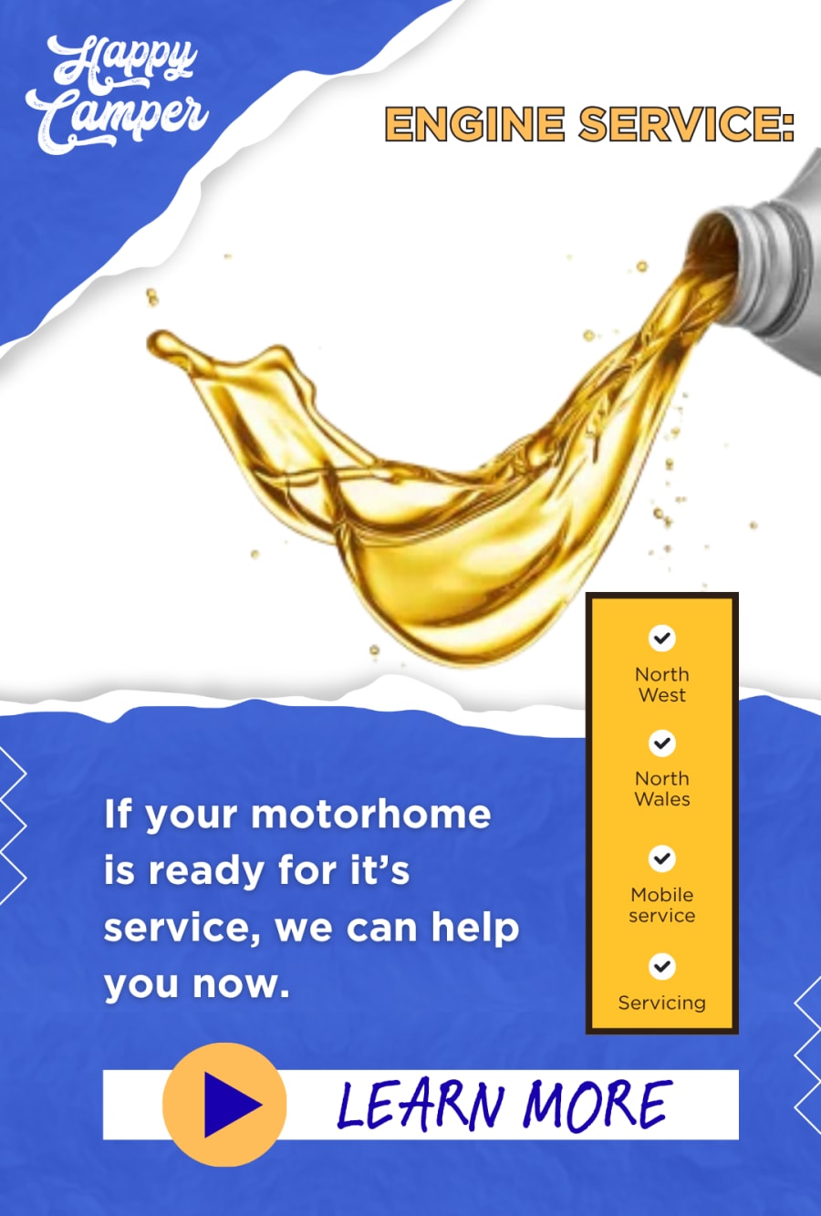 Getting a service on your motorhomes engine is essential to make sure your road trips and holidays go with out a hiccup. We provide motorhome servicing, repair and upgrade all types of motor homes in our specialised workshop. We can service all many brands such as Fiat, Nissan, Toyota, Ford, Peugeot Citroen and Mercedes. Your manufacturers warranty is not affected. Getting a mechanical service to your motorhome or camper can not only keep your engine in tip top condition but also find issues before they get any worse. Mechanical servicing is carried out on the chassis and engine of your motorhome. Depending on mileage, this should be carried out at least every year or at 20k mileage intervals, if sooner in line with vehicle manufacturers recommendations. We offer a mobile motorhome engine service in the North West and the North Wales area