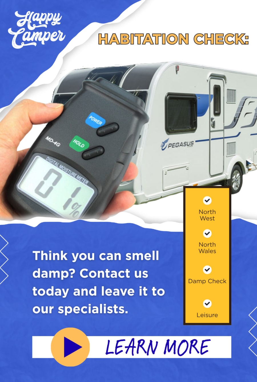 At Happy Camper, we offer a wide range of services. One in particular that we undertake is caravan and motorhome damp inspections across the North West and North Wales area. We also offer roof seal and roof leak repairs on motorhomes, static caravans, and touring caravans. We offer a wide range or roof repairs for all types of caravans and all our work is guaranteed. As well as dealing with your leaking roof we can deal with gutter repairs, upgrades and installations, facia, and even install complete new roofs to any type of static caravan or touring caravan and lodges. For all your caravan roof repair and upgrade needs, call us today or book an inspection online 24 hours a day.
