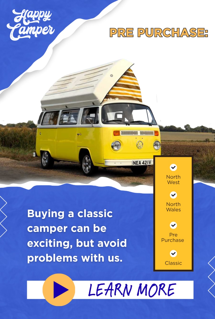 Ensure your classic camper dreams become a reality. Contact The Happy Camper Store today to schedule a professional classic camper pre-purchase inspection in the North West or the North Wales area.