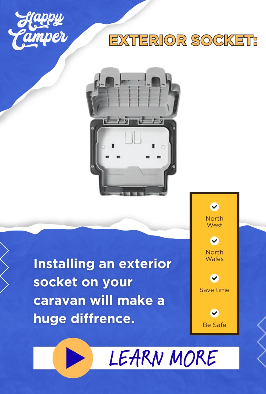 If you are looking to get the most out of your static caravan our team of static caravan experts can help you. We install exterior sockets for outside and garden use. With our socket installation, we offer a exterior socket installation for static caravans and lodges across the North West and North Wales area. Our static caravan out door sockets which we supply and fit can be used all year round as they are fully water proof and sealed. These are ideal to plug outside cooking utilities into, jet washes, Washing machines and many other electrical items that you can use outside. This installation is carried out by trained electrical experts and installed to a high quality. Offering only quality, our fitter will asses the best place to install the socket and advise you of the best place to see if this is suitable for you. If you would like a static caravan or lodge outside socket fitting book online now or call our team to discuss your requirements.